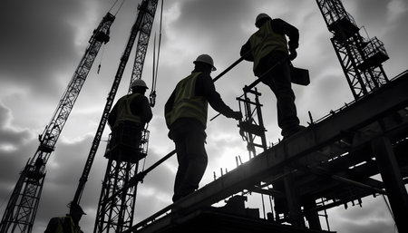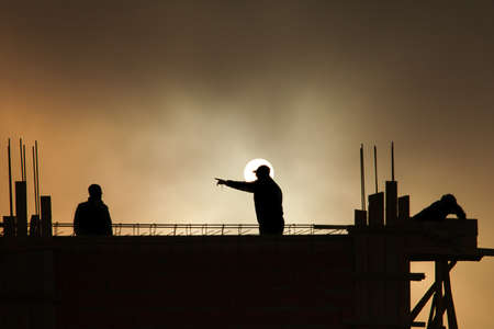silhouette of constructionworker on constructionsite