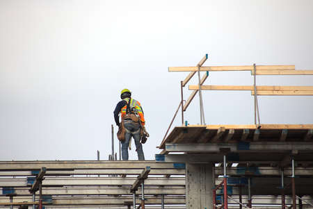 construction site worker at work roof beams