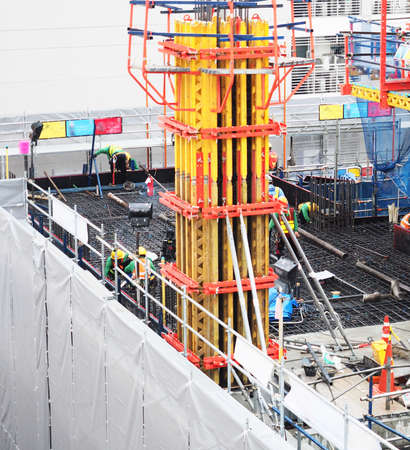 Construction work in construction site, Construction work fabricating steel reinforcement bar at the construction site