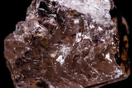 Macro mineral stone smoky quartz Rauch topaz on black background close up