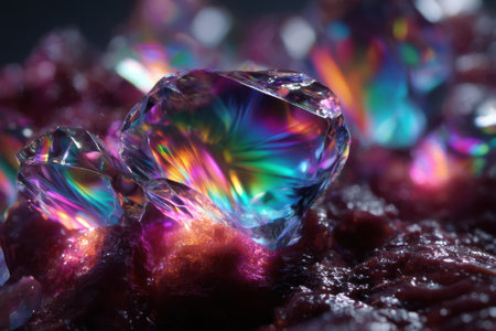 Abstract crystal formations overlay texture showcasing vivid hues and intricate patterns