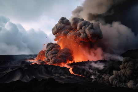 volcanic eruption, with lava flows and smoke billowing into the sky, created with generative ai