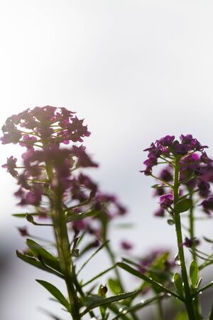 Violet Lobularia maritima flowers, known as Alyssum maritimum, sweet alyssum or sweet alison