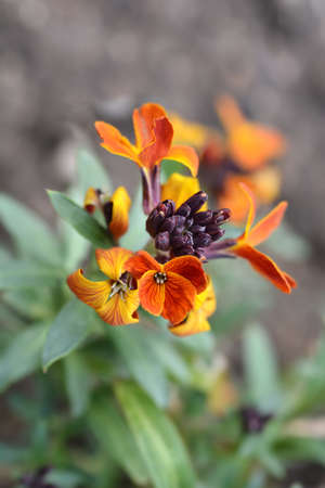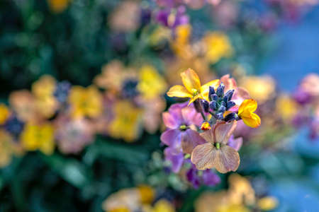 Erysimum, wallflower, a genus of flowering plants in the cabbage family. Concept My garden. Close up