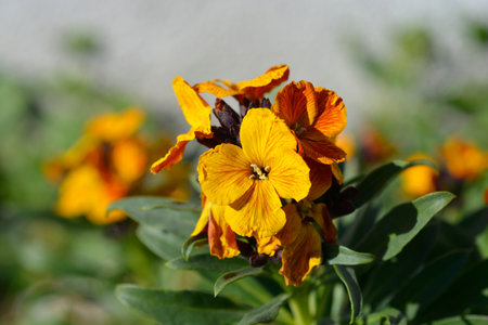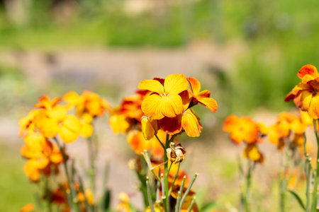 Yellow and orange wallflower flowers - Latin name - Erysimum cheiri