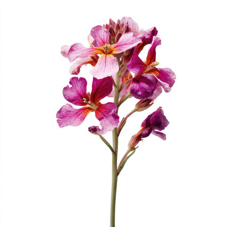 This isolated cutout of a wallflower showcases vibrant pink and purple petals on a clean background, ideal for creative projects.