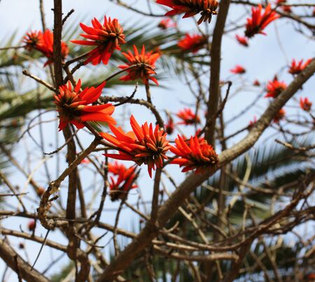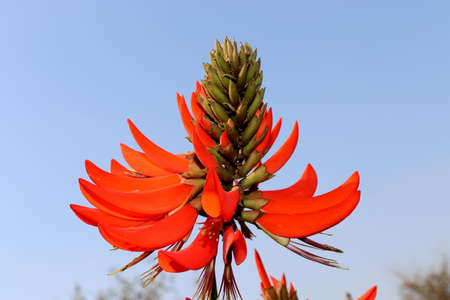 The red Coral Tree flower risolated in Wolfson park in Ramat Gan, Israel