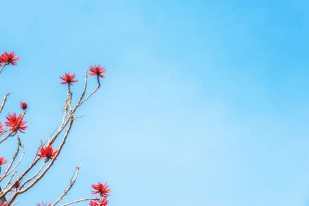 Flowers of the Bombax ceiba on the background of the sky