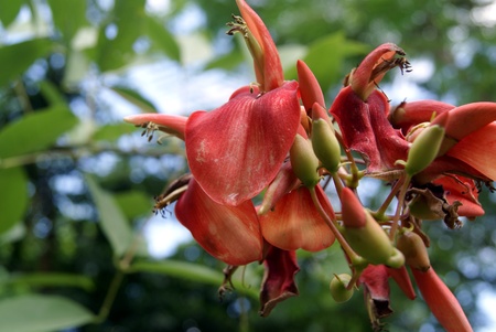 beautiful flowers and pods blooming in red