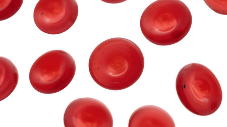 Witness the mesmerizing motion of blood cells as they gracefully flow from the right side to the left side against a clean white background