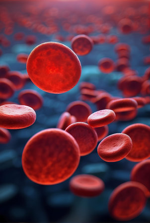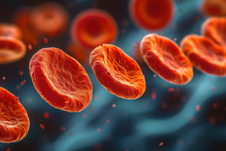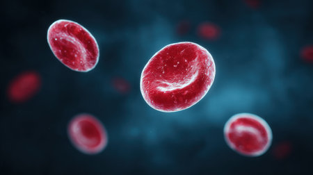 Red blood cells float in a dark background showcasing their unique disc shape and role in oxygen transport throughout the body.
