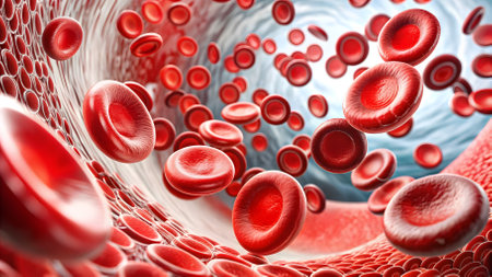 This image depicts red blood cells in motion within the human circulatory system, illustrating their vital role in oxygen transport and overall health.