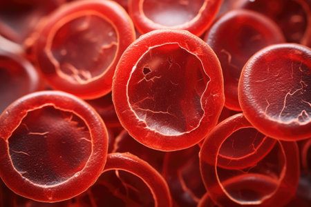 Macro shot of red blood cells in artery. Created with Generative AI