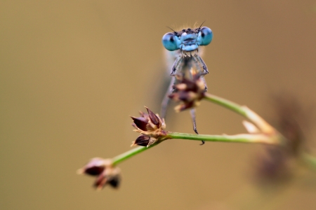 Blue dragonfly Enallagma cyathigerum, common blue damselfly, common bluet, or northern bluet
