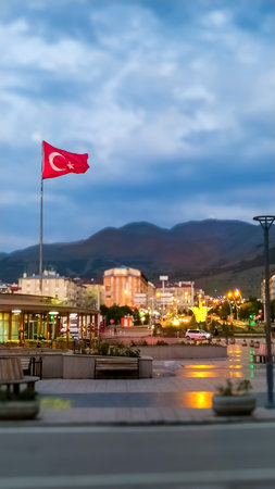 Turkish national flag hang in view in open air