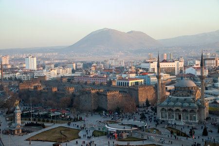 Kayseri,Turkey - 01-21-2014:View of the old Kayseri castle and the great mosque