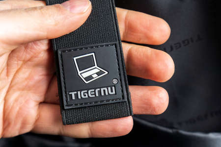 Tyumen, Russia-February 03, 2022: Tigernu logo is a brand of functional backpacks for travel and urban use.