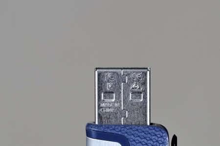 USB memory stick detail on type a interface with capacity size indicator and standard compatible icon isolated on white