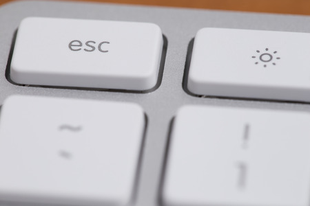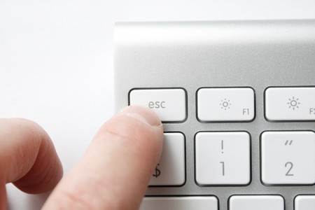 Finger Pressing Escape on a white and Grey Computer Keyboard