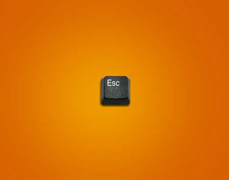 Single, white computer keyboard escape key over orange background, stop, quit or exit business concept, flat lay top view from above, 3D illustration