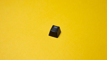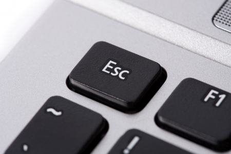 Key Esc ran away from a black computer keyboard. Office Escape Concept.