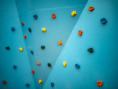 Climbing wall, blue climbing wall. Geometry both in the city and buildings.