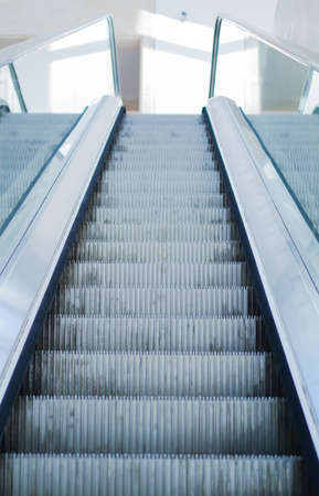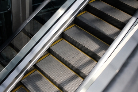 Low angle view of an escalator within a commercial building. To convey a modern / commercial / business concept.