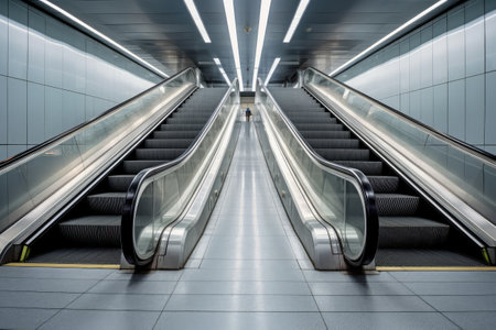 stock photo of empty Airlines Airports Escalator photography Generated AI