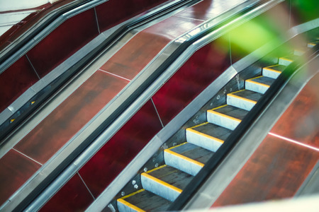 Escalators in the shopping mall. Motion blur. Selective focus.