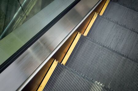 Modern luxury escalators with staircase Escalator in Community Mall, Shopping Center. Moving up staircase. electric escalator. Close up to escalators.