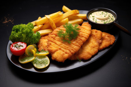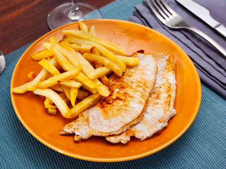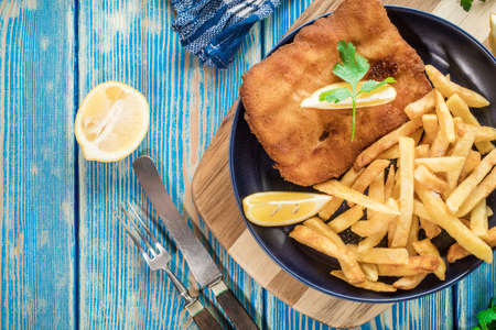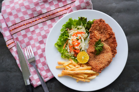 Delicious schnitzel served with french fries