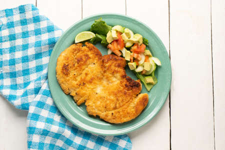 Crispy chicken breast fillets with salad. Healthy food