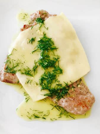 Steak with cheese and dill