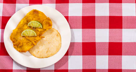 Fish torta with arepa - Colombian street food