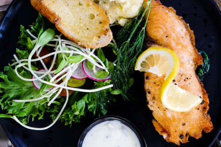 Fried fish with fresh salad