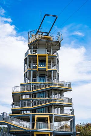 Steel staircase to watchtower near German river Elbe