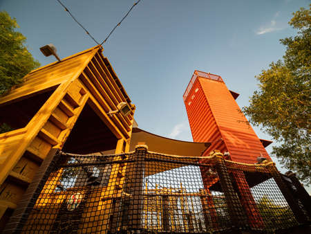 Chiang Rai, Thailand - January, 11, 2022 : Zipline Tower at Singha Park, Chiang Rai province, Thailand.