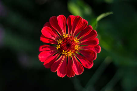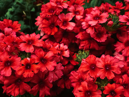 Red flower in garden. Flower in summer. Inflorescence on green background.