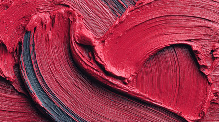 Thick creamy texture of deep red berry lipstick smear featuring smooth artistic waves and a velvety finish suitable for elegant cosmetic and beauty product backgrounds.