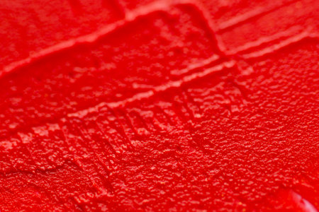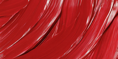 This image presents a close-up of vibrant red paint strokes, creating an abstract texture. The thick, dynamic brush patterns reveal textural details and variations in color, enhanced by lighting. It could be used in design, advertising, or as a background, and is suitable for various commercial or artistic applications.