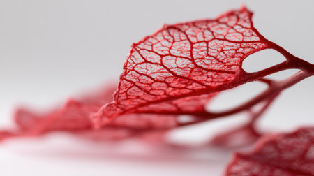 Red lace leaf detail with rich color contrast and natural textures, shallow depth of field