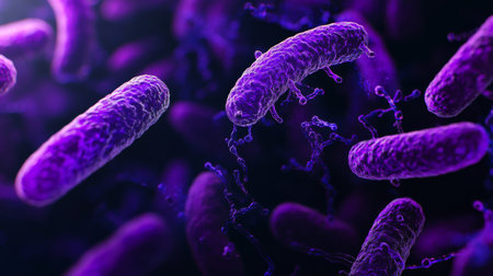 Bacteria close-up with purple and black hues, scientific visualization concept