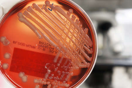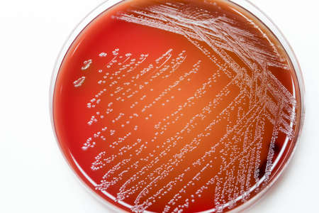 Salmonella enteritidis bacterial colonies on blood agar plate, medical background