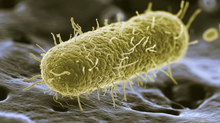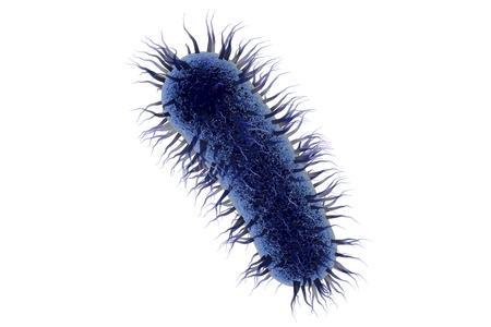 Escherichia coli bacterium, 3D illustration. Gram-negative bacterium with peritrichous flagella which is part of normal intestinal microflora and also causes enteric and other infections
