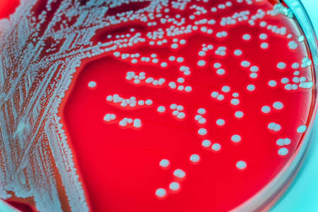 Salmonella enteritidis bacterial colonies on blood agar plate, abstract medical background