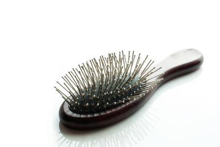 a brush with lost hair on orange background