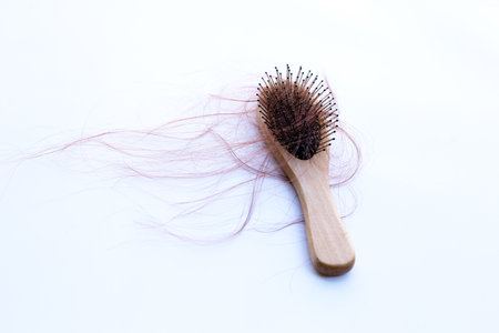 Hairs loss fall in comb on white background.