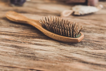 hair loss. wooden comb with burnt hair from stress