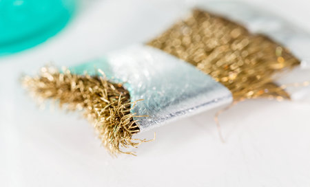 A selection of brass wire brushes for use with a drill