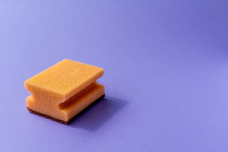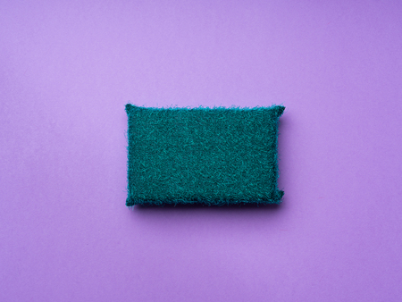 Cleaning sponge on purple background. Minimal cleaning concept